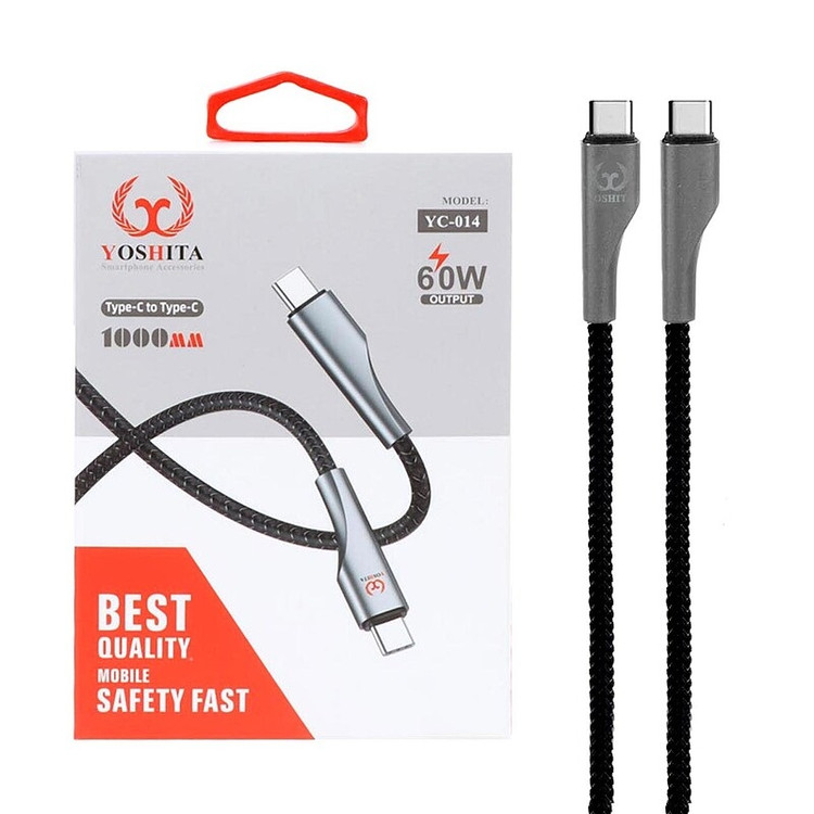 جنس کابل USB-C به USB-C یوشیتا YOSHITA مدل YC-014 از الیاف نایلونی کنفی تشکیل شده و در برابر درهم پیچیدن و خمش مقاوم است. به طور کلی اگر به دنبال یک کابل با کیفیت و پرسرعت برای شارژ تلفن همراه خود هستید و یا قصد دارید اطلاعات خود را جا به جا کنید انتخاب کابل USB-C به USB-C یوشیتا YOSHITA مدل YC-014 برای شما مناسب است.