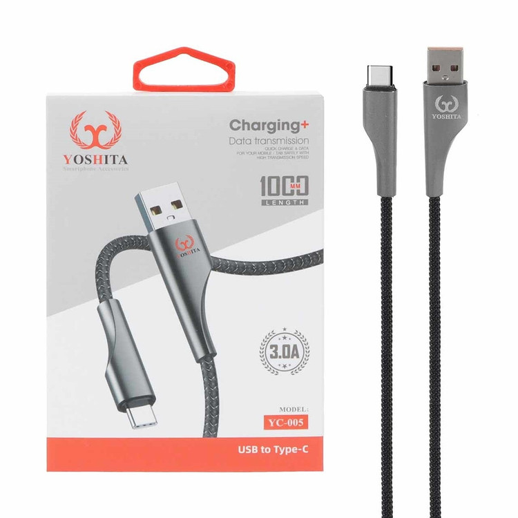 جنس کابل USB به USB-C یوشیتا YOSHITA مدل YC-005 از الیاف نایلونی کنفی تشکیل شده و در برابر درهم پیچیدن و خمش مقاوم است. به طور کلی اگر به دنبال یک کابل با کیفیت و پرسرعت برای شارژ تلفن همراه خود هستید و یا قصد دارید اطلاعات خود را جا به جا کنید انتخاب کابل USB به USB-C یوشیتا YOSHITA مدل YC-005 برای شما مناسب است.