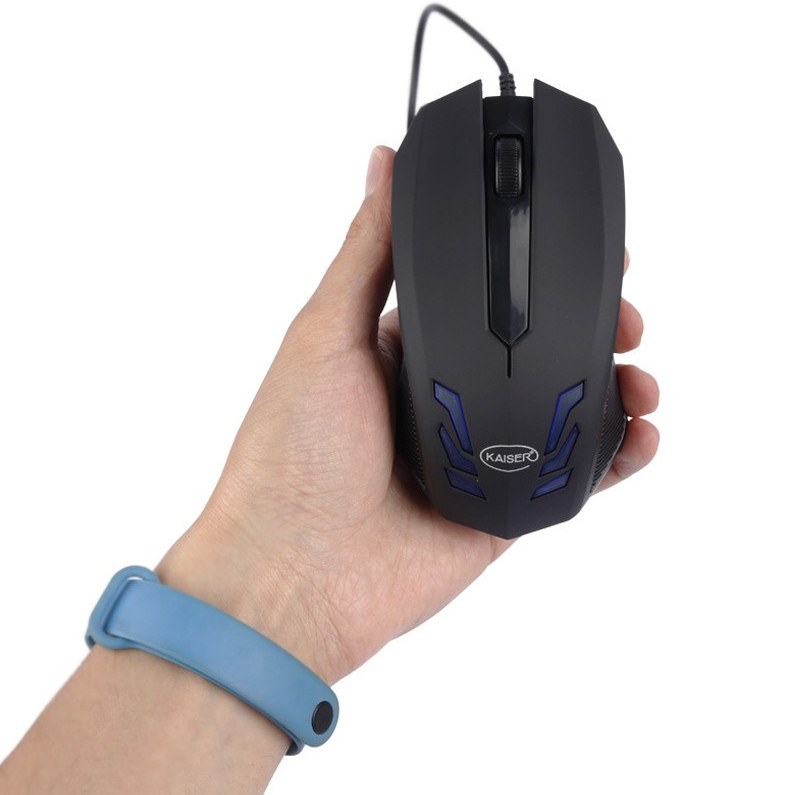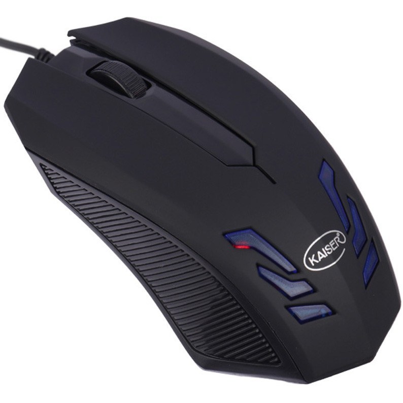 موس گیمینگ Kaiser K-G107 موس مخصوص بازی کایزر مدل K-G107 اتصال از نوع با سیم به طول تقریبی 120 سانتی متر با روکش پلاستیکی مقاوم در برابر کشش و خمیدگی حسگر از نوع اپتیکال با میزان دقت 4800DPI، دارای سه عدد کلید با عمر ضربه پذیری 3 میلیون بار کلیک بدنه ساخته شده از جنس پلاستیک مقاوم در برابر آسیب های فیزیکی همچون فشار و ضربه دارای رابط از نوع USB2.0، مجهز به نورپردازی داخلی و قابلیت استفاده با هر دو دست موفق به کسب گواهینامه های استاندارد امنیت و سلامت محصولات شامل