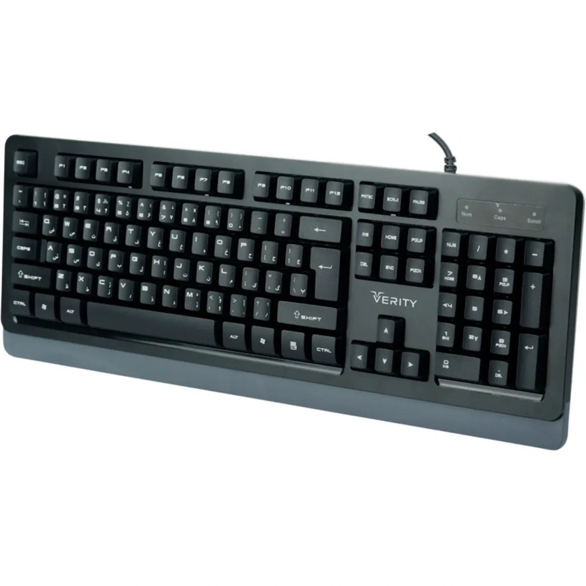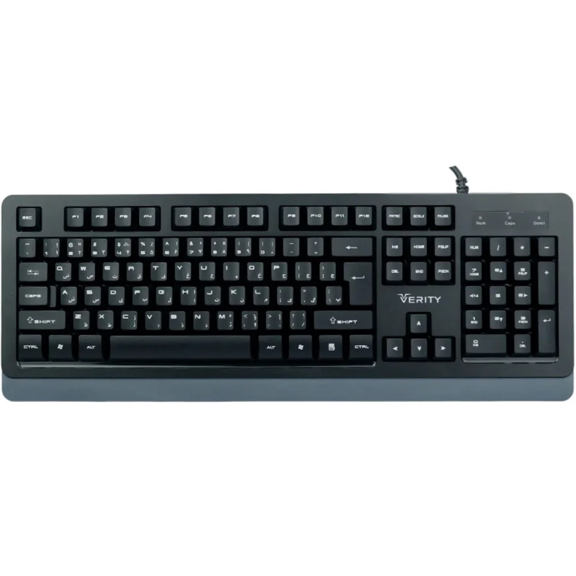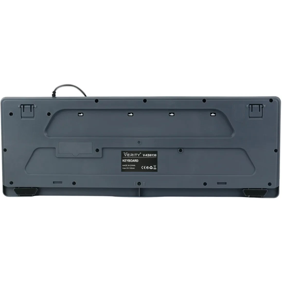 کیبورد باسیم وریتی V-KB6136 دارای طراحی زیبا و جذاب و درعینحال ارگونومیک است که میتواند برای مصارف خانگی و اداری گزینهی مناسبی باشد. همچنین کیبورد باسیم وریتی V-KB6136 محصولی با طراحی زیبا و استاندارد است که ابعاد آن در حدود 29× 166× 455 میلی متر می باشد. تعداد کلیدهای این کیبورد 104 عدد با عمر کلیدپذیری 8 میلیون بار است. مدل V-KB6163 از طریق پورت USB به رایانه شما وصل می گردد و با تمامی سیستمعامل ها سازگاری دارد. دکمه های کیبورد این محصول دارای حروف حکشده فارسی است و با توجه به شیوه حک باکیفیت دارای ماندگاری نیز می باشد. کیبورد وریتی به صورت جزیره ای طراحیشده و دارای دکمه های تخت می باشد. کیبورد V-KB6163 دارای سه چراغ LED می باشد که برای اعلان روشن یا خاموش بودن کلیدهای Num Lock، Caps Lock و Scroll Lock است. این کیبرد V-KB6163 به نشانگرهای LED جهت اطلاع از وضعیت کارکرد مجهز است. همچنین دارای بدنه ای مقاوم از جنس پلاستیک بوده و امکان تنظیم ارتفاع کیبورد فراهم است. اتصال آن با سیم و از طریق رابط USB با طول 150 سانتی متر انجام می گیرد. کیبورد سیمدار وریتی مدل V-KB 6163 با تمامی سیستم عاملها سازگار است. همینطور به واسطه کابل USB، میتوانید آن را به کامپیوتر، لپ تاپ، یا سایر دستگاههایی که از صفحه کلید پشتیبانی میکنند، متصل کنید. طراحی نسبتا ارگونومیک، دکمههای نرم، و پایههای شیب دهنده، در کنار عمر بالای کلیدها، همگی دلایل خوبی برای تهیه این محصول هستند.