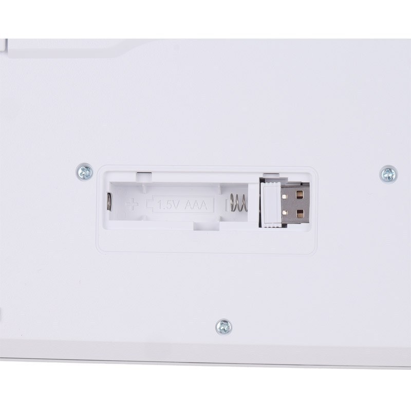 امکان تنظیم ارتفاع کیبورد از طریق پایه تعبیه شده در زیر بدنه، همراه با یک عدد باتری نیم قلمی